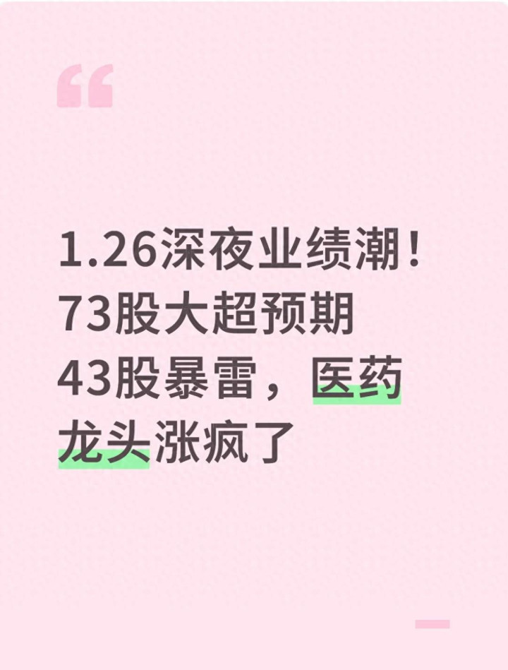 1.26深夜业绩潮! 73股大超预期43股暴雷, 医药龙头涨疯了